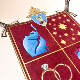 This drawing was commissioned as a gift for former director of the Marriage and Respect Life Office of the Diocese of Phoenix, Mike Phelan. The gift was given to him from the Marriage and Respect Life Office team, who collaborated in designing the original coat of arms themselves as a graphic illustration, incorporating various colors and symbols that had a special connection and meaning to Phelan and his work at the Diocese over the past several years. I was then given the digital image, which I used to create a colored pencil illustration.