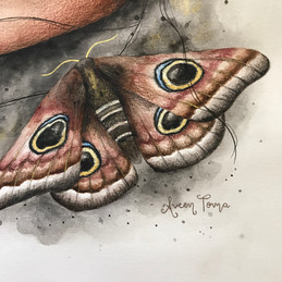 This drawing attempts to depict the reality that we do not belong to the darkness. This girl is engulfed in a cloud of darkness and is framed by dry leaves due to the lack of life within her. Moths fly towards her in an attempt to wake her up, with one even trying to open an eyelid. They are trying to tell her that she is not like them- she was not made to live at night as they do, for she is marked with Christ. This indelible sign is the golden cross on her forehead, which symbolizes her belonging to God and serves as the proof that she is indeed a child of the Light. I have also received an outside perspective state that the moths may be approaching her because moths are naturally attracted to the light- and she is of the Light. I admire this view, as we certainly ought to attract others because of the Light that is within us and be the ones radiating It to those still asleep in the dark. Note, though creatures of the dark will not realistically be the ones waking us up or bringing to our attention Whom we actually belong to, the selection of moths for this role is simply an artistic, playful, and storylike twist to the underlying message.